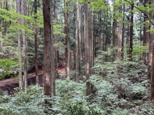 森は針葉樹と広葉樹が混じる混交林へ。
