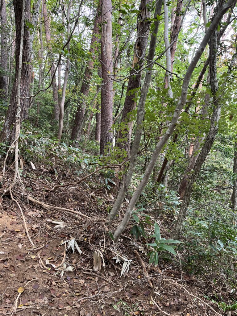 森林作業道は、山の等高線に沿って緩やかな勾配で設置します。