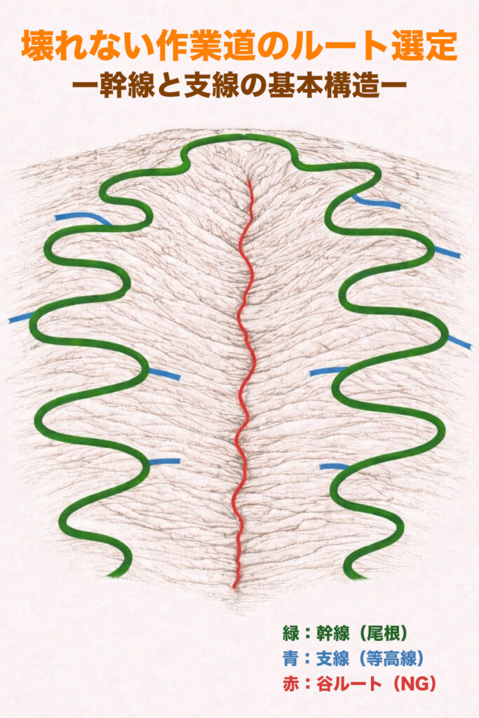 作業道は「作り方」よりも「どこに通すか」で8割決まります。