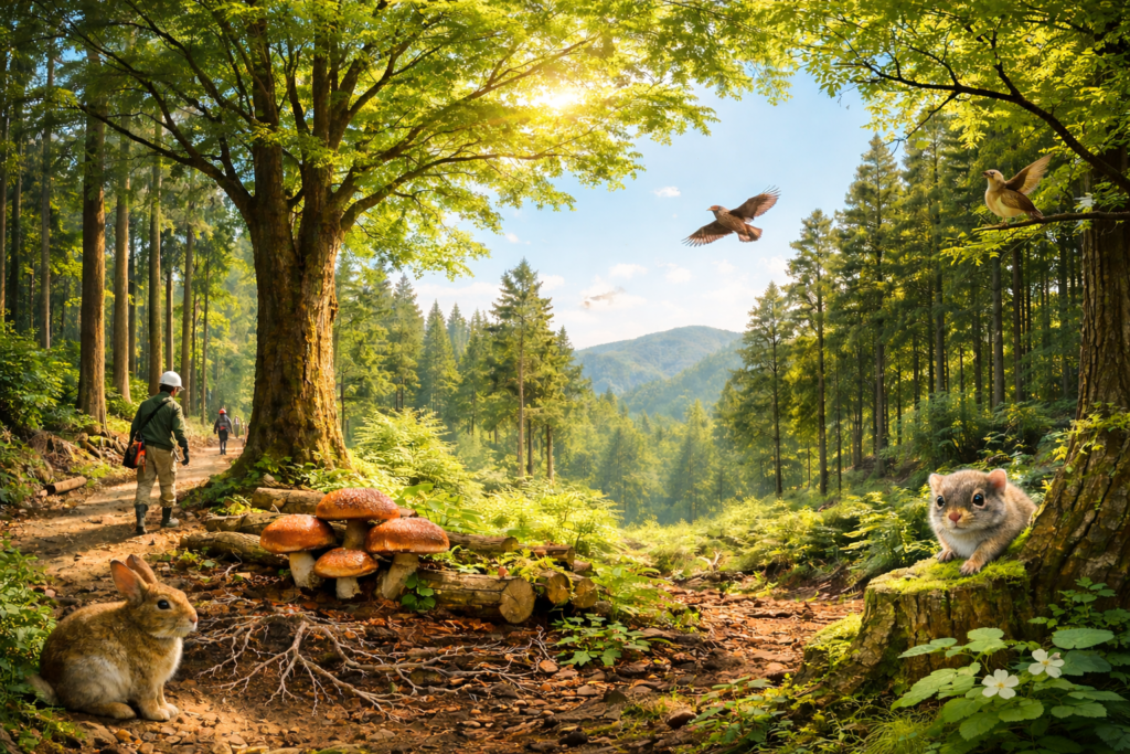森は、水を育み、土を守り、多くの生きもののすみかとなり、